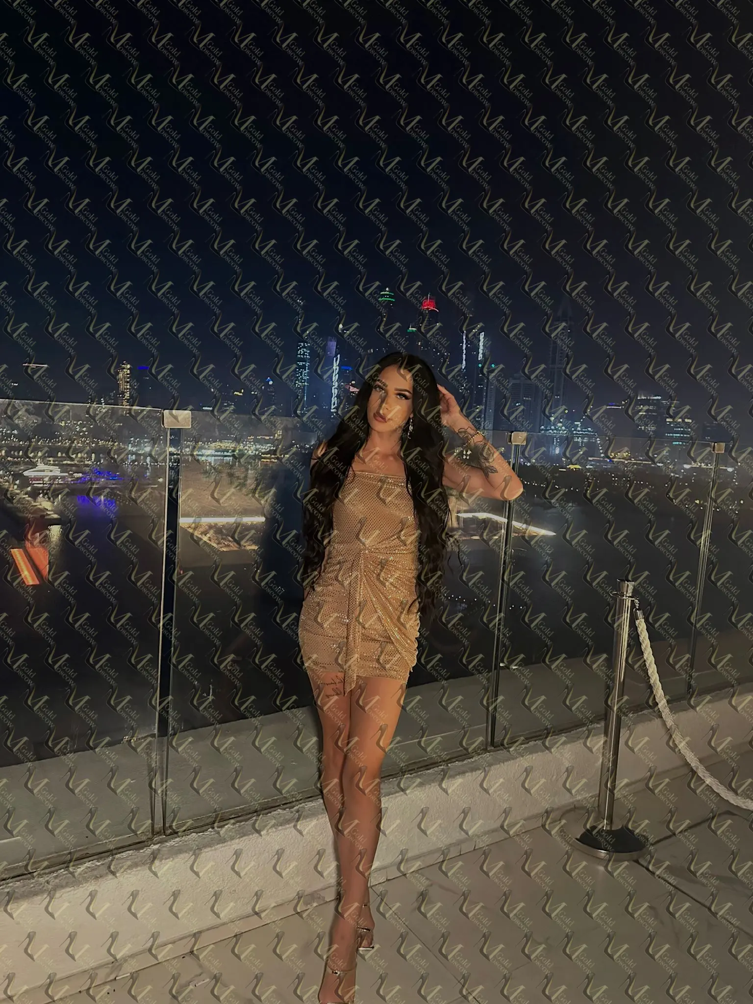 У меня высокий и худощавый силуэт – 168 см роста и вес 48 кг, так что я могу показать вам элегантность и лёгкость в движениях. Длинные тёмные волосы часто волнуют меня, когда я расчесываю их пальцами, а небольшие груди A‑размера делают меня нежной, но в то же время подсвечивают каждую линию тела. На правой плече у меня татуировка, которая появляется только когда я хочу добавить немного игривости в образ.